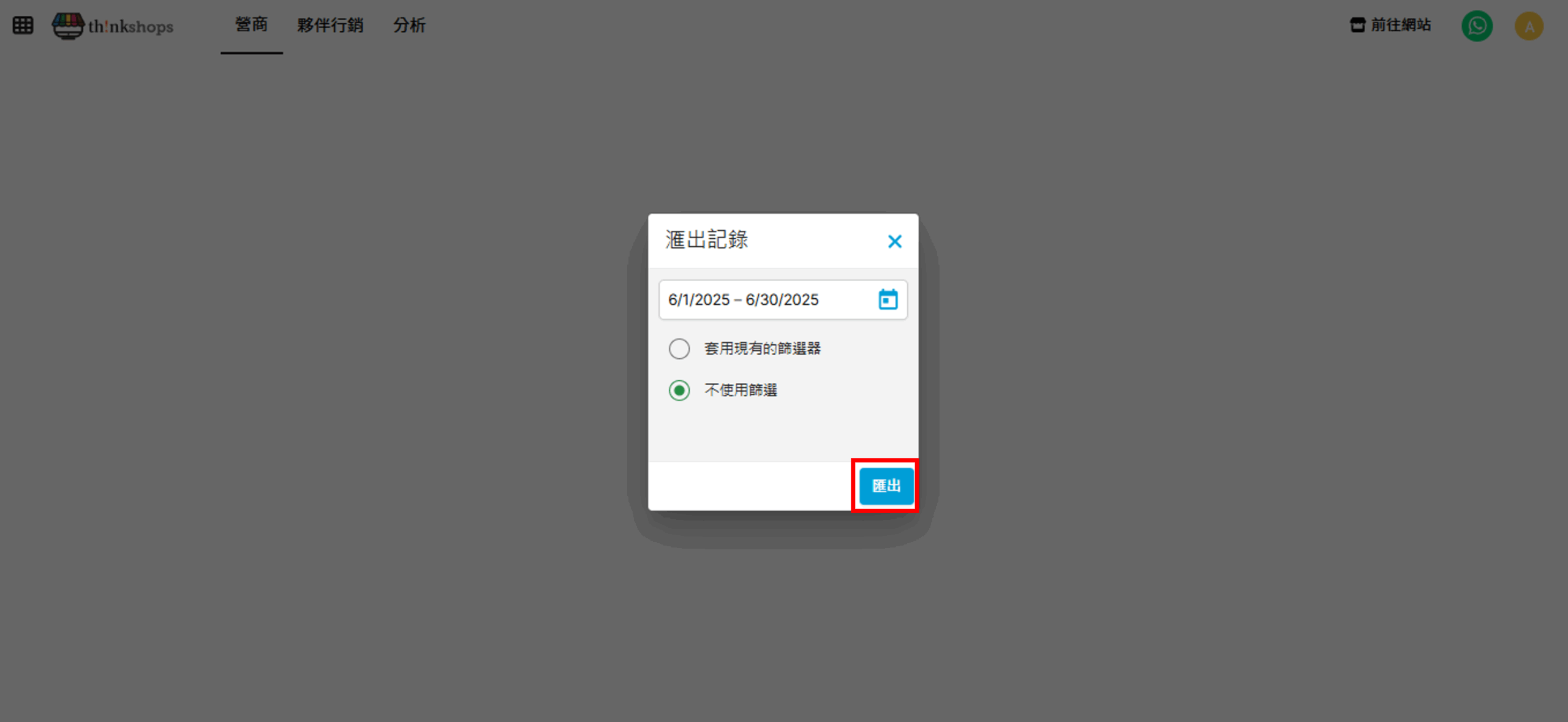 輸入需要匯出的日期期間及選擇是否套用玩有篩選器,按「匯出」: