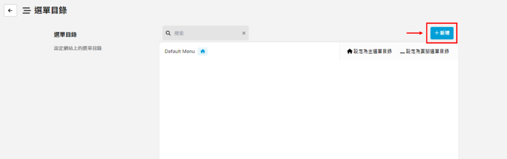 第一步 進入「頁面>設置您的網站目錄/選單」,並點擊「+新增」