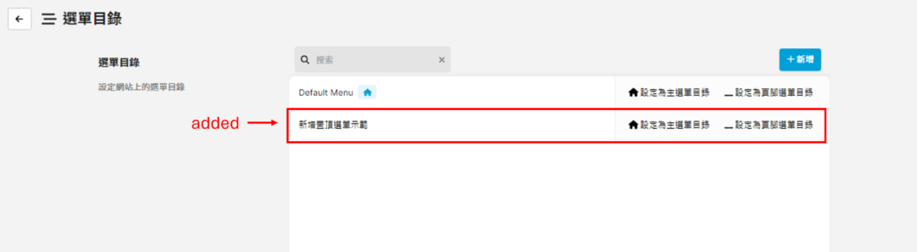第三步 成功新增選單目錄