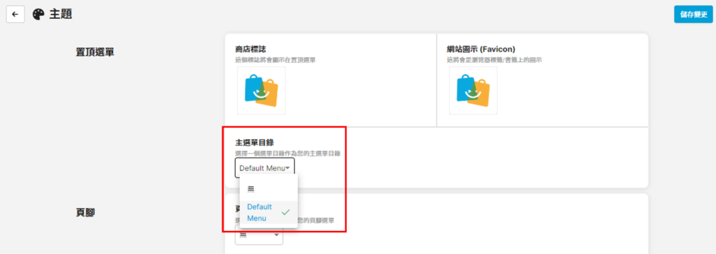 第四步 返回「設定>主題>頁腳>頁腳選單」,您便會見到剛新增的選單目錄可供選擇,選擇後按右上方「儲存變更」即可應用選單目錄