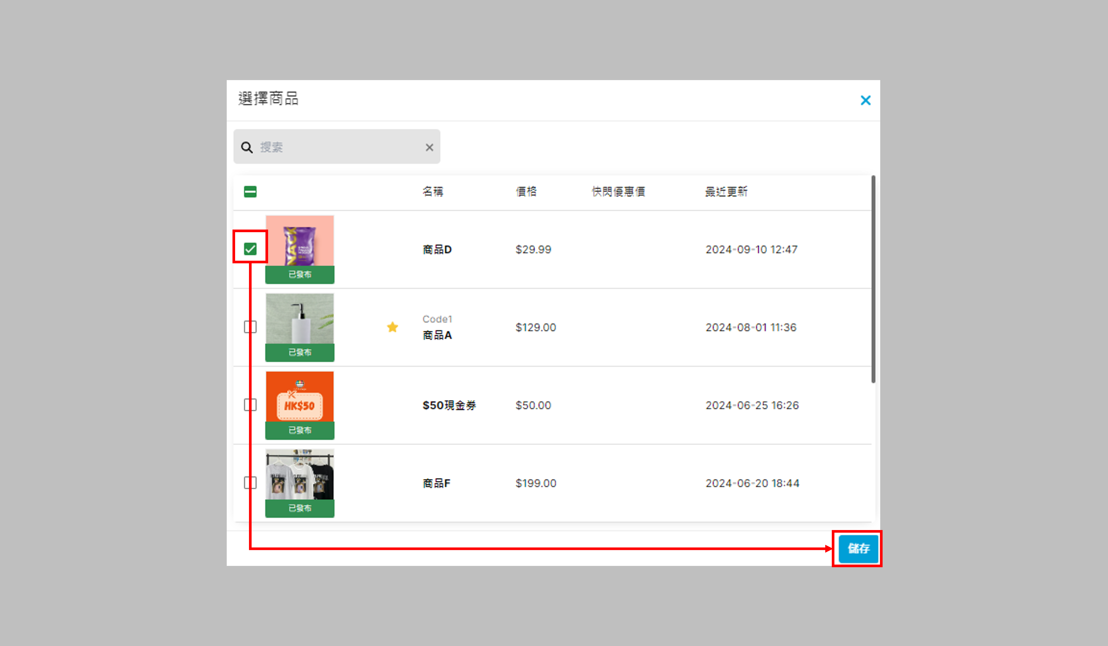選擇相關商品,按儲存: