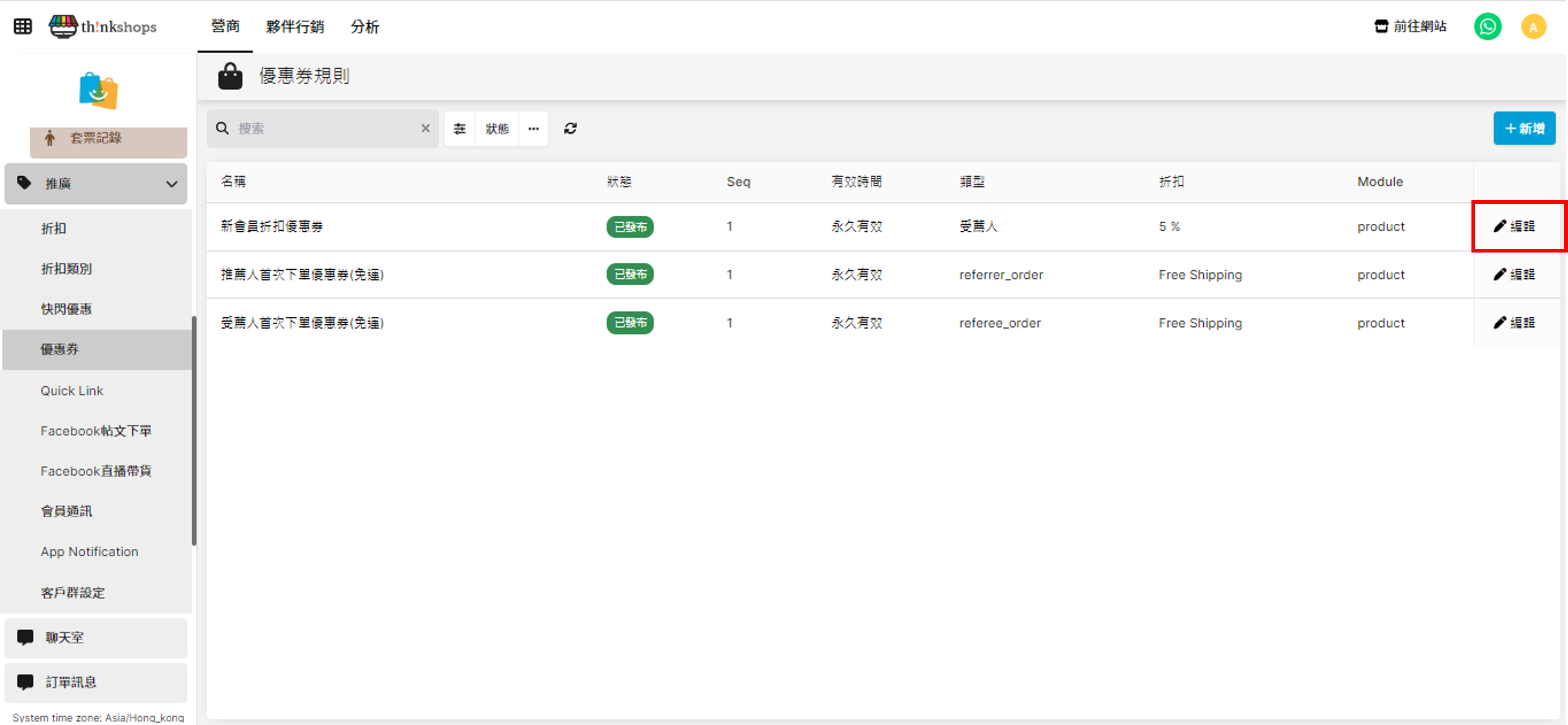 二、編輯或刪除優惠券規則