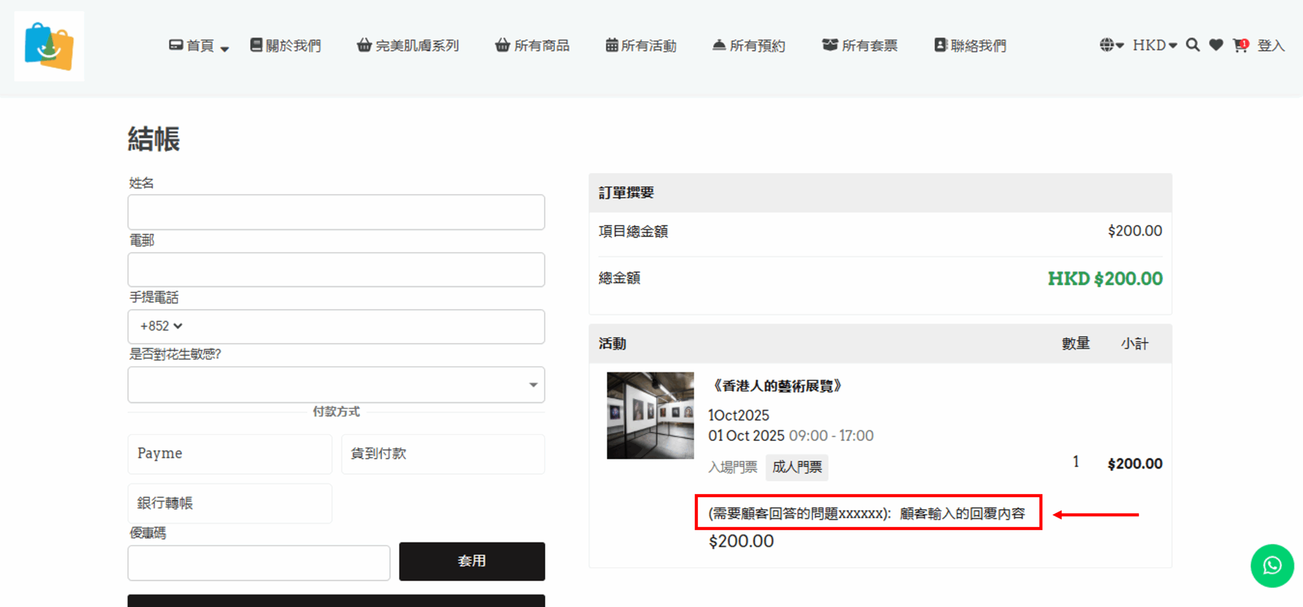 顧客輸入回覆後,結帳頁面顯示如下: