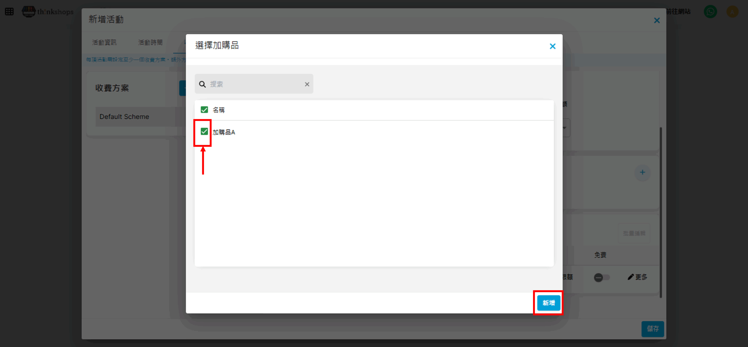 選擇需加入的加購品,按「新增」: