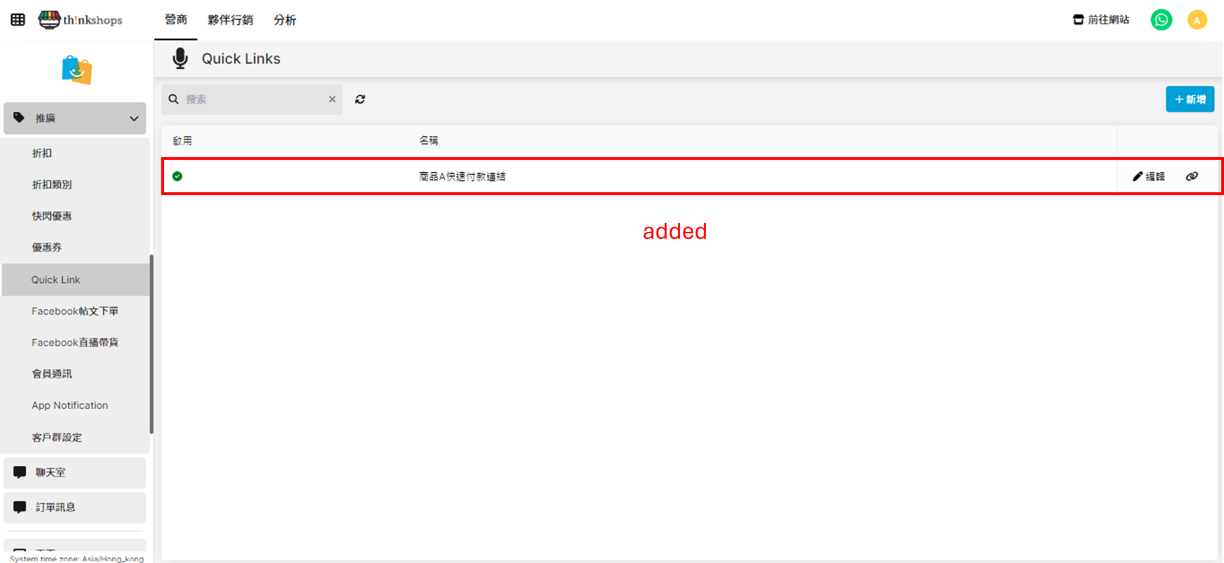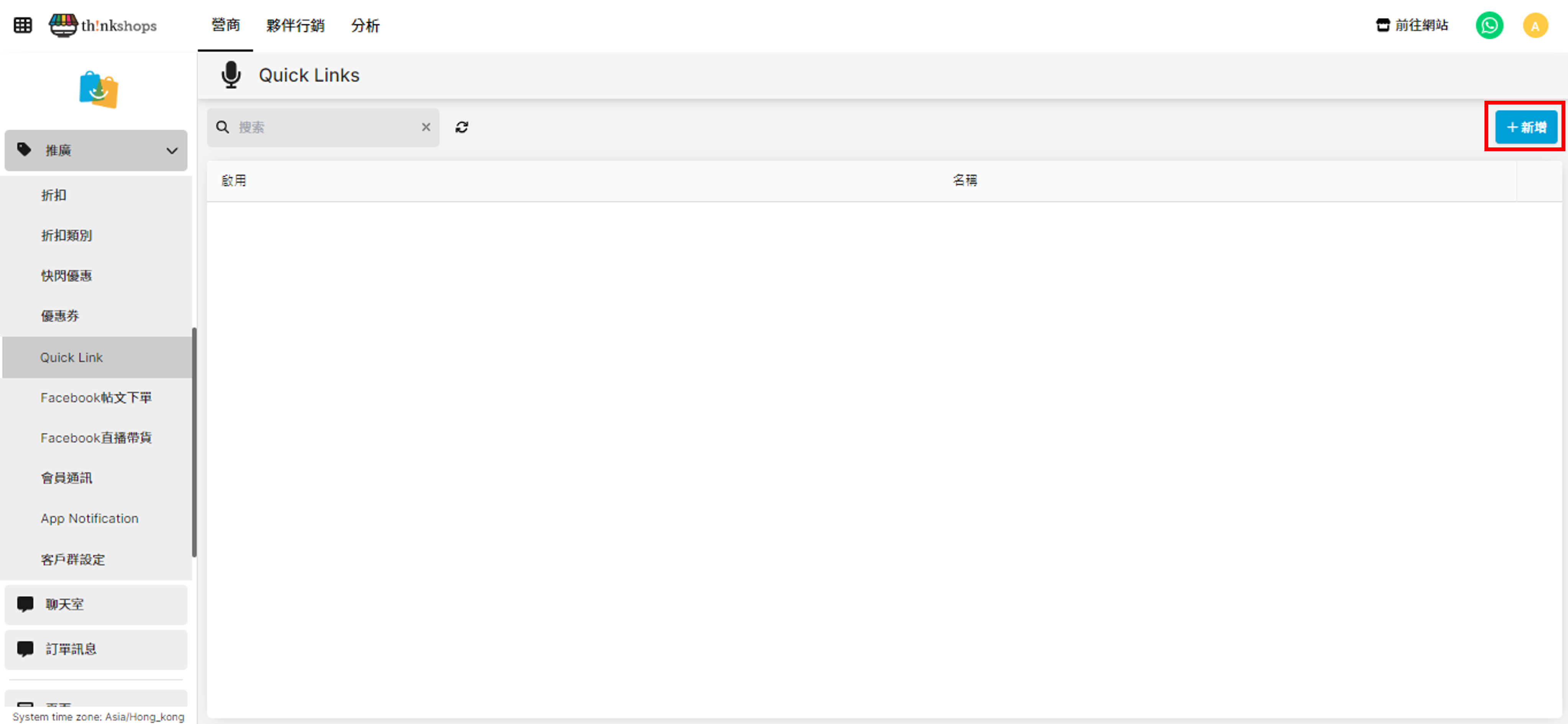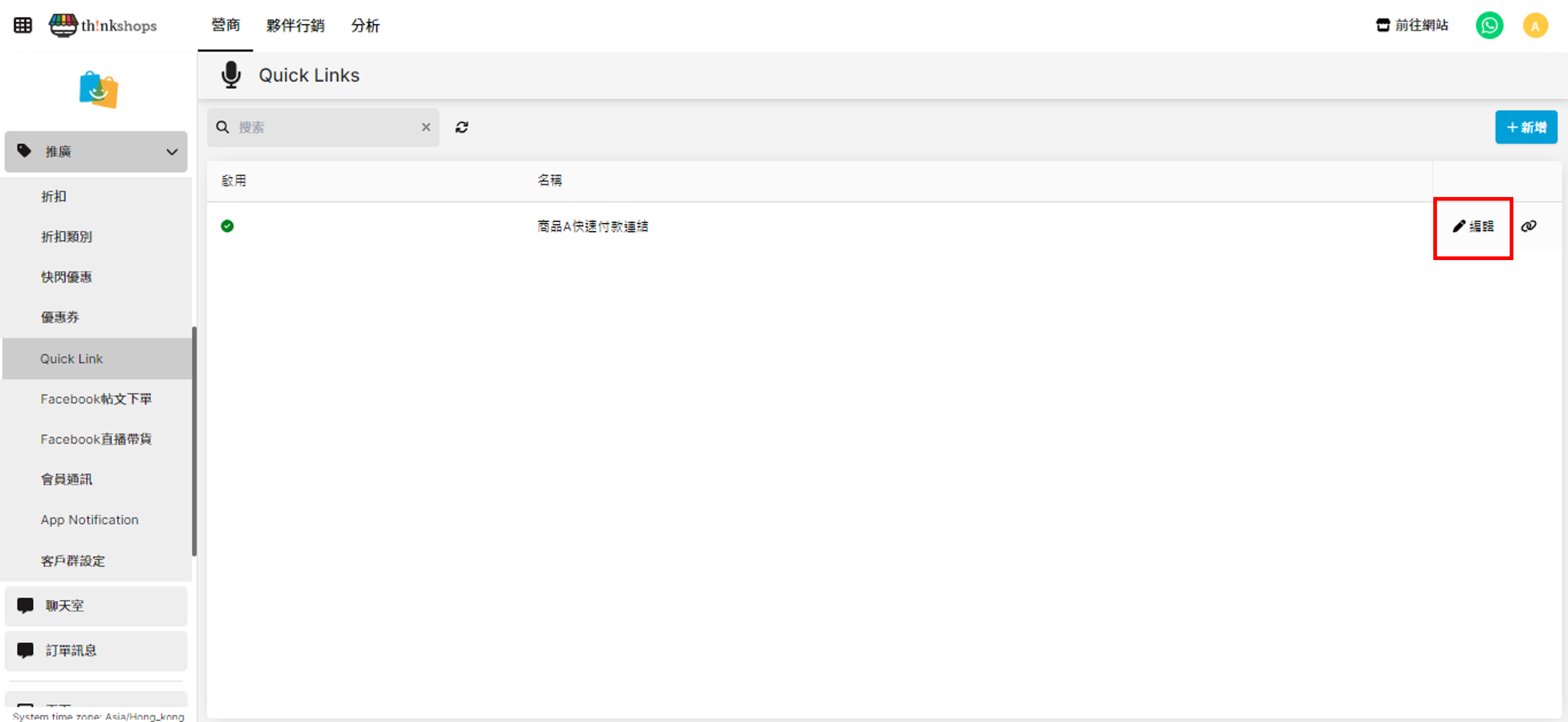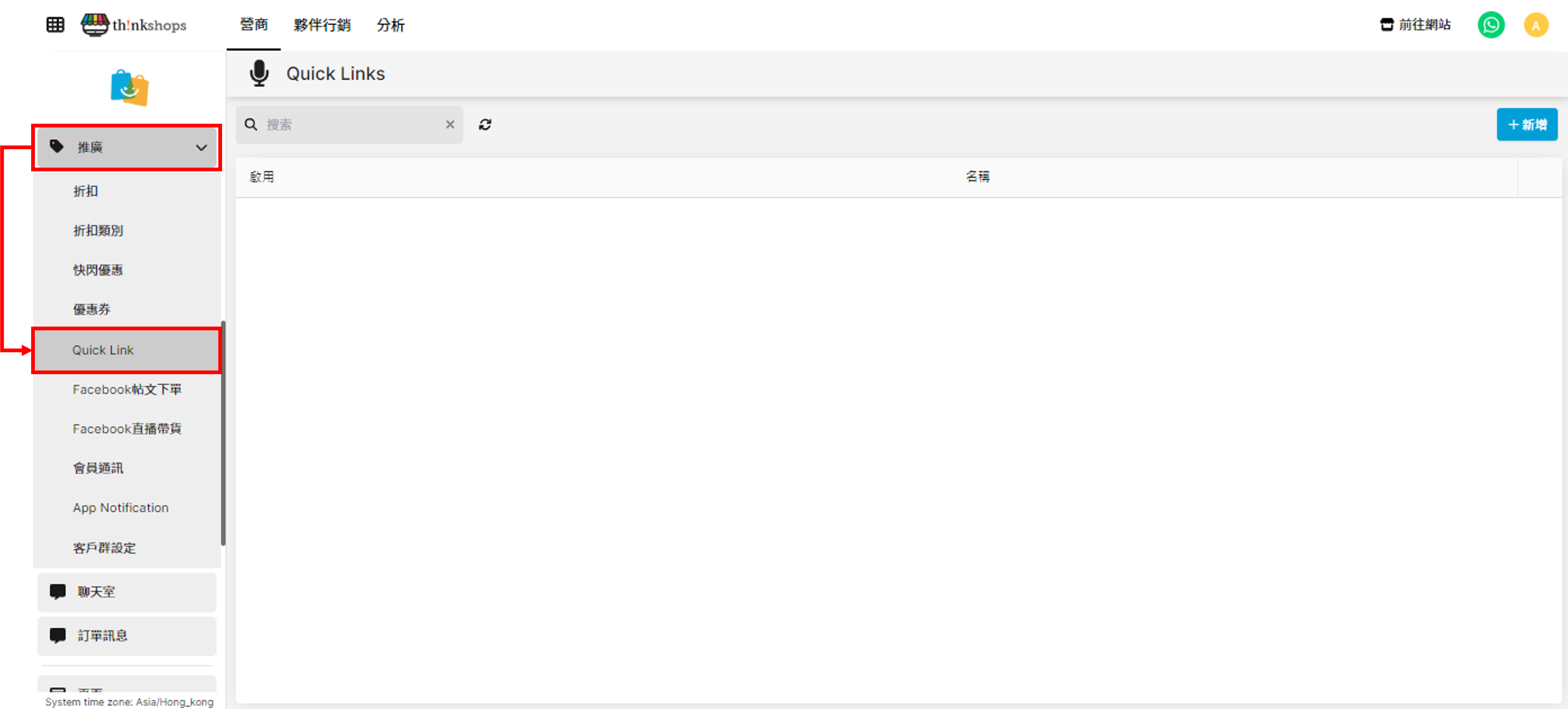 選單位置:於主選單點擊「推廣」下的「Quick Link」