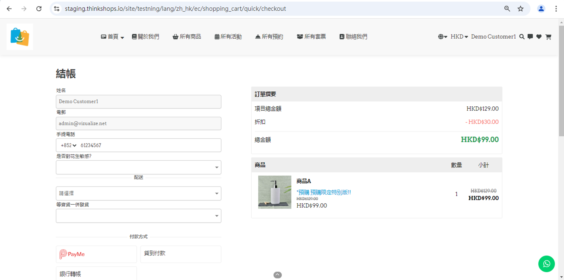 客人點擊連結後便會直接進入結賬頁面: