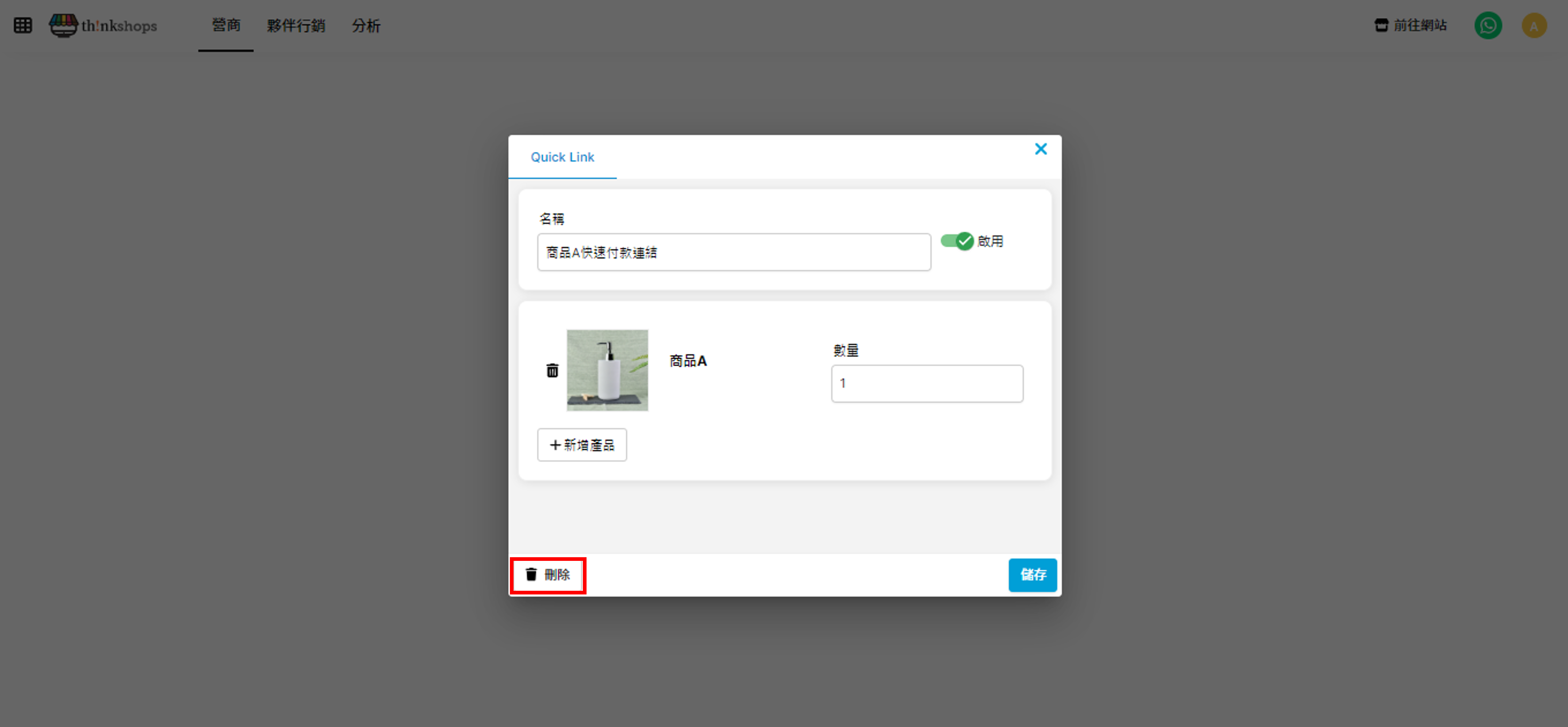 按照以上進入編輯快速付款連結的步驟,然後點按左下方的「刪除」按鈕即可刪除快速付款連結。