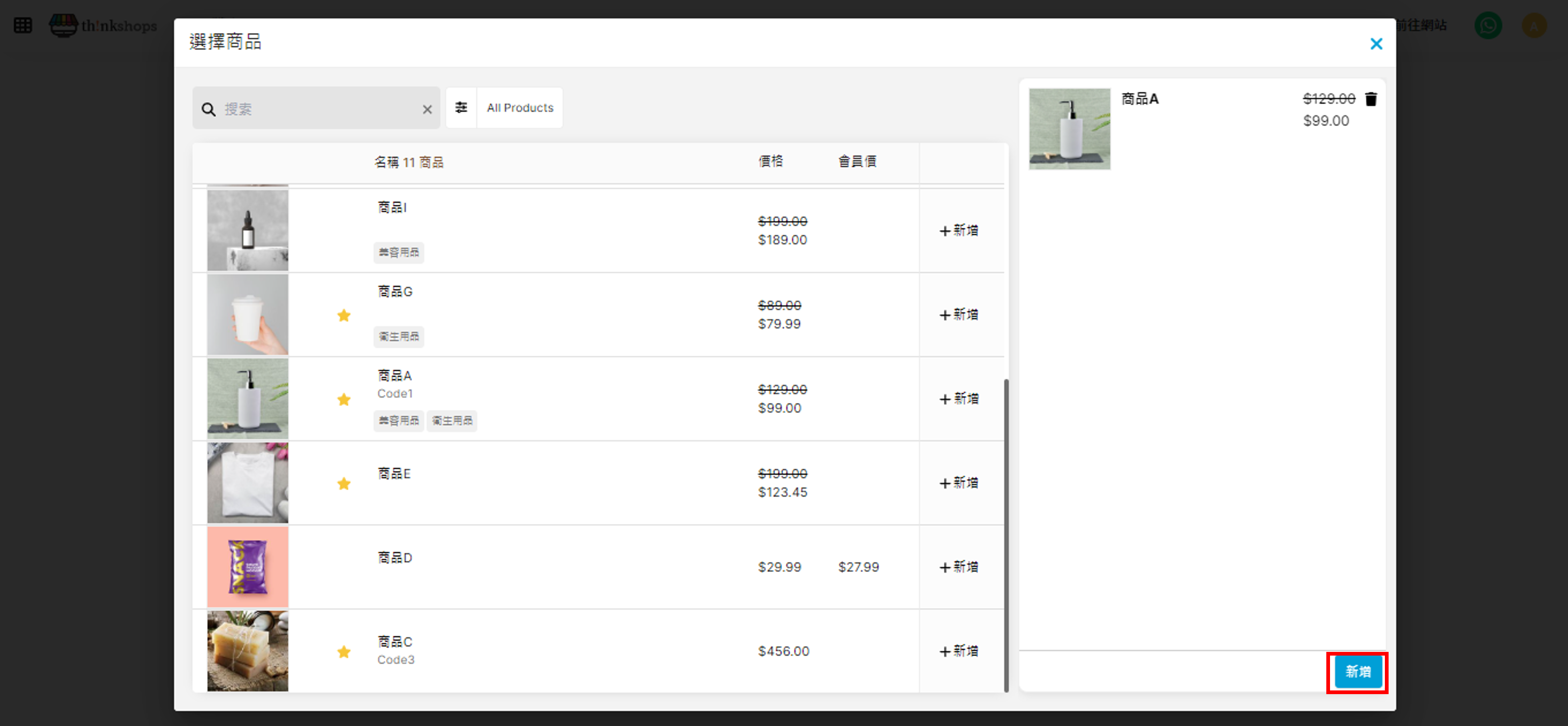 加入好商品於右方列表內後,再按右下方「新增」確認: