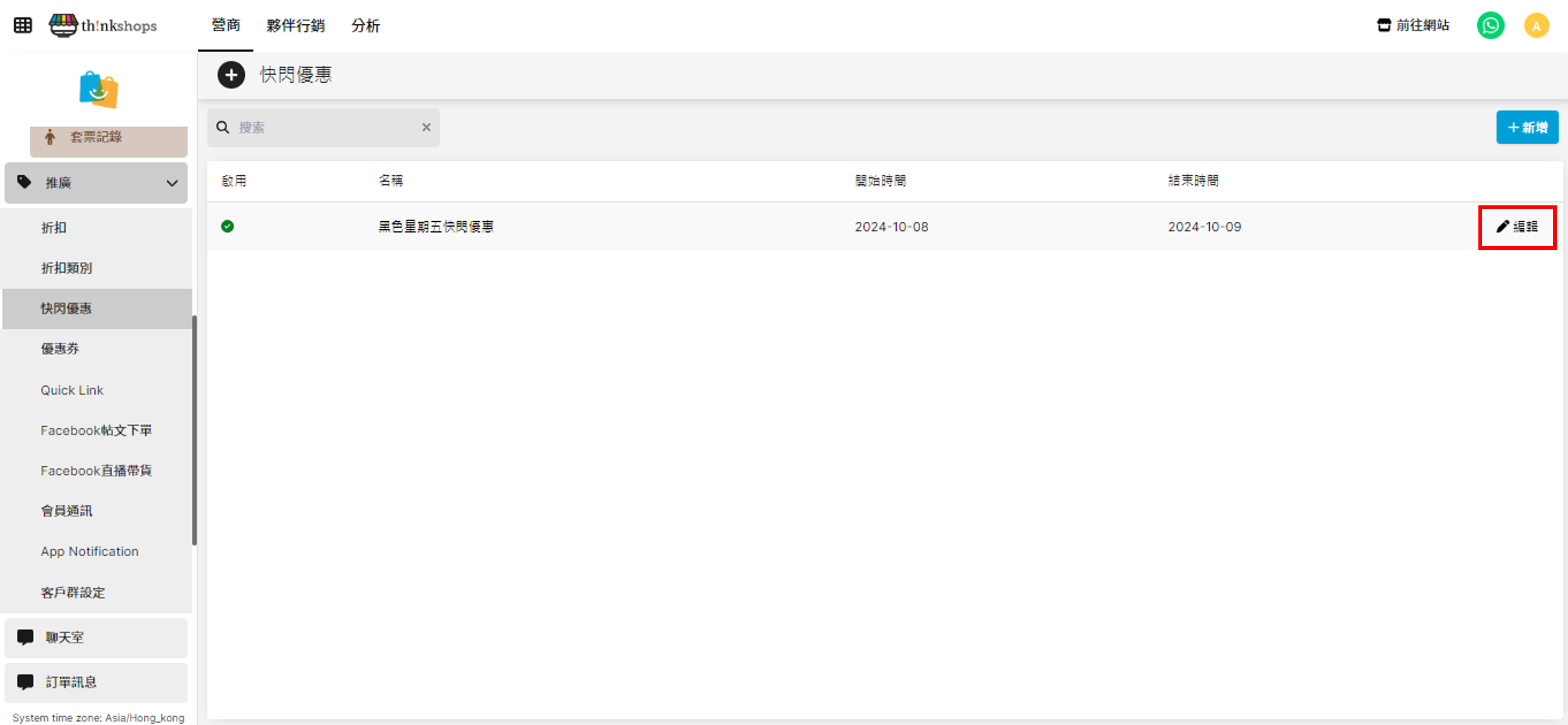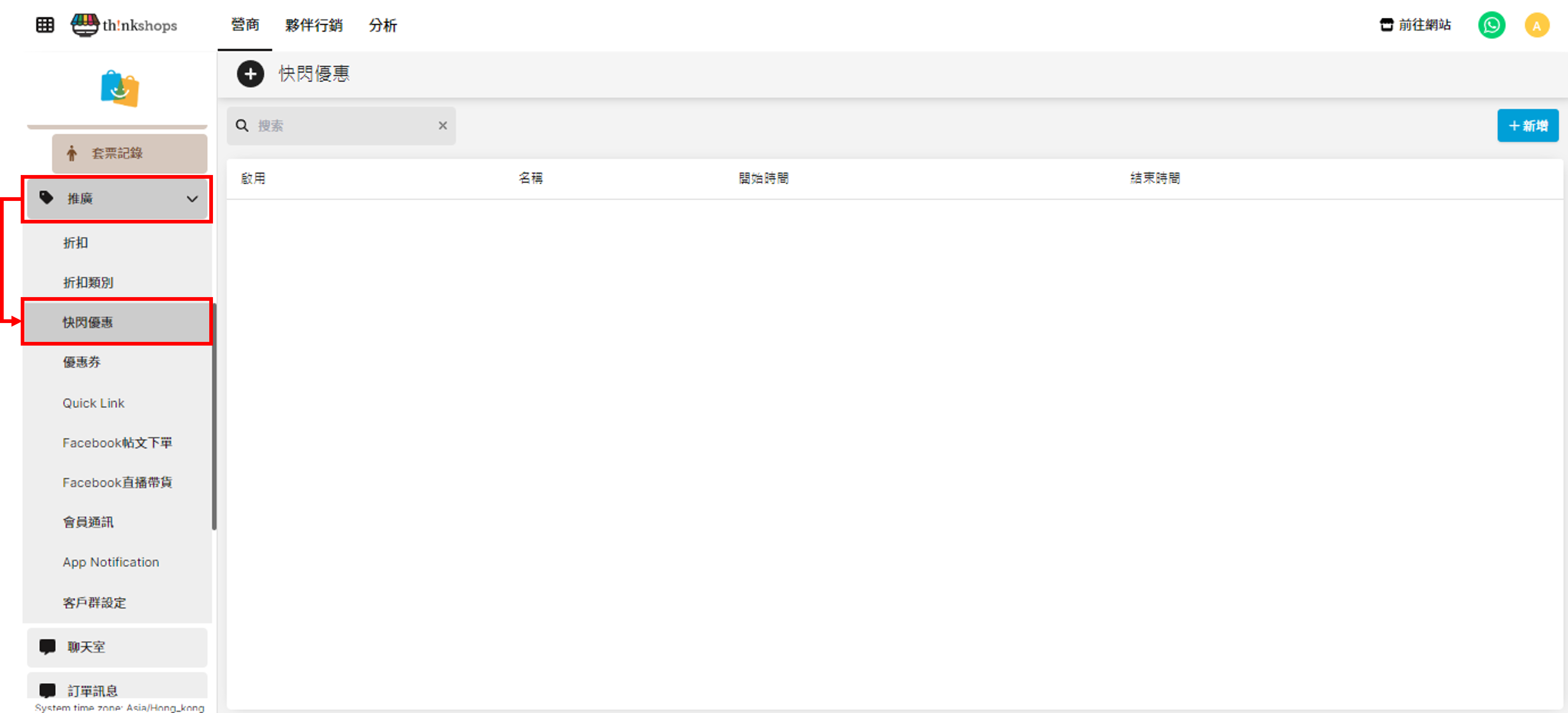 您會進入到以下「新增快閃優惠活動」列表: