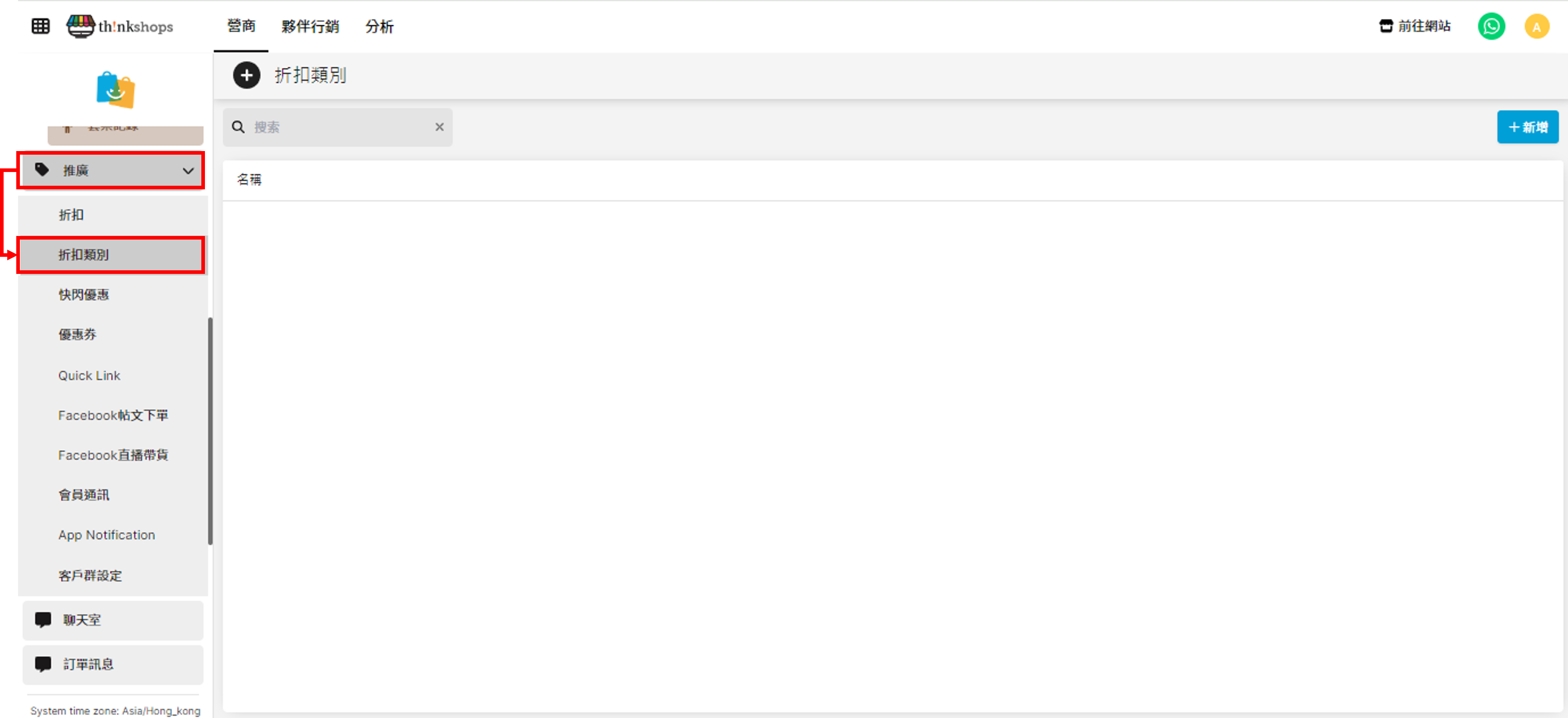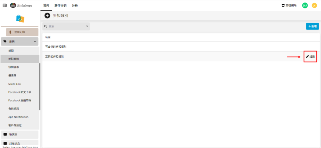 選單位置:於主選單點擊「推廣」下的「折扣類別」