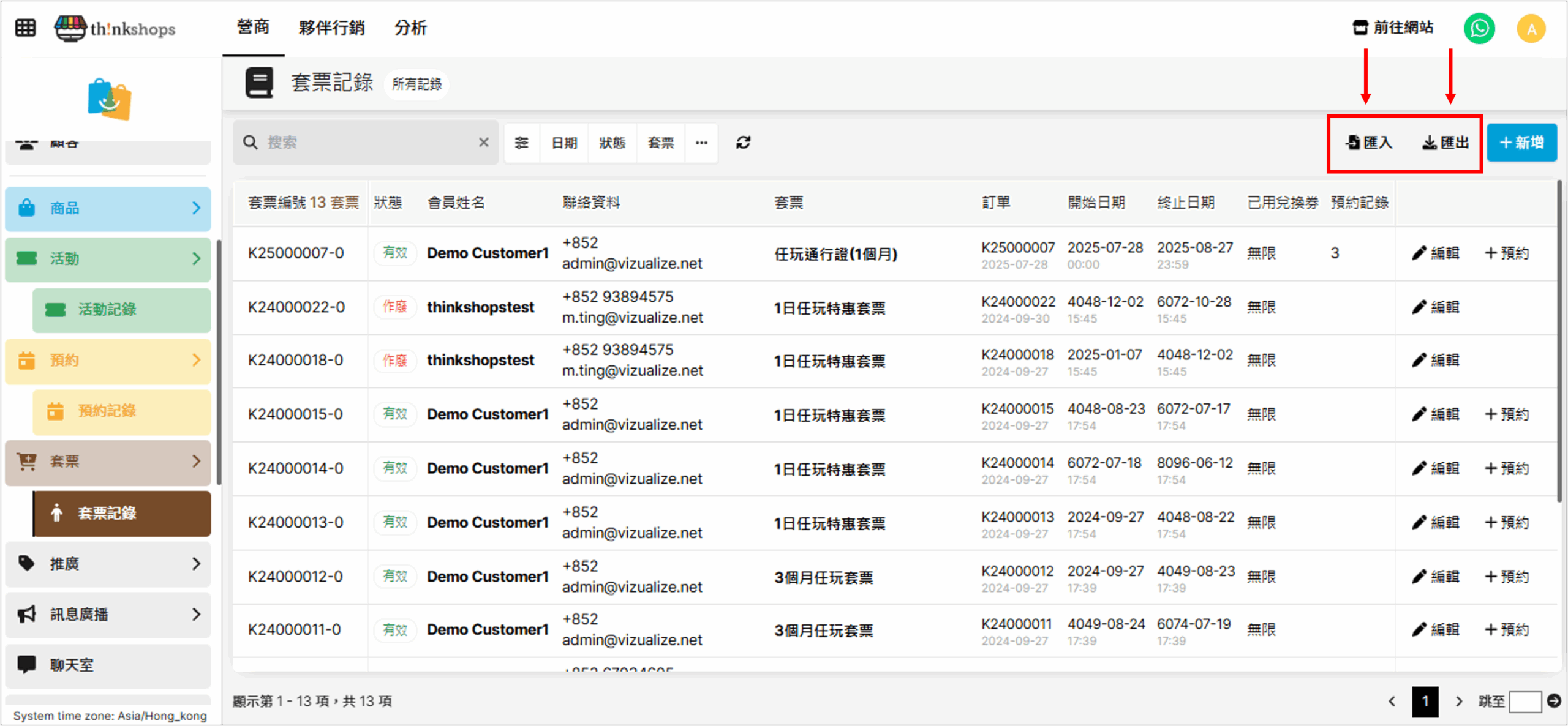 如需匯入或匯出套票訂單資料,可按右上方「匯入」或「匯出」(可使用範本excel):