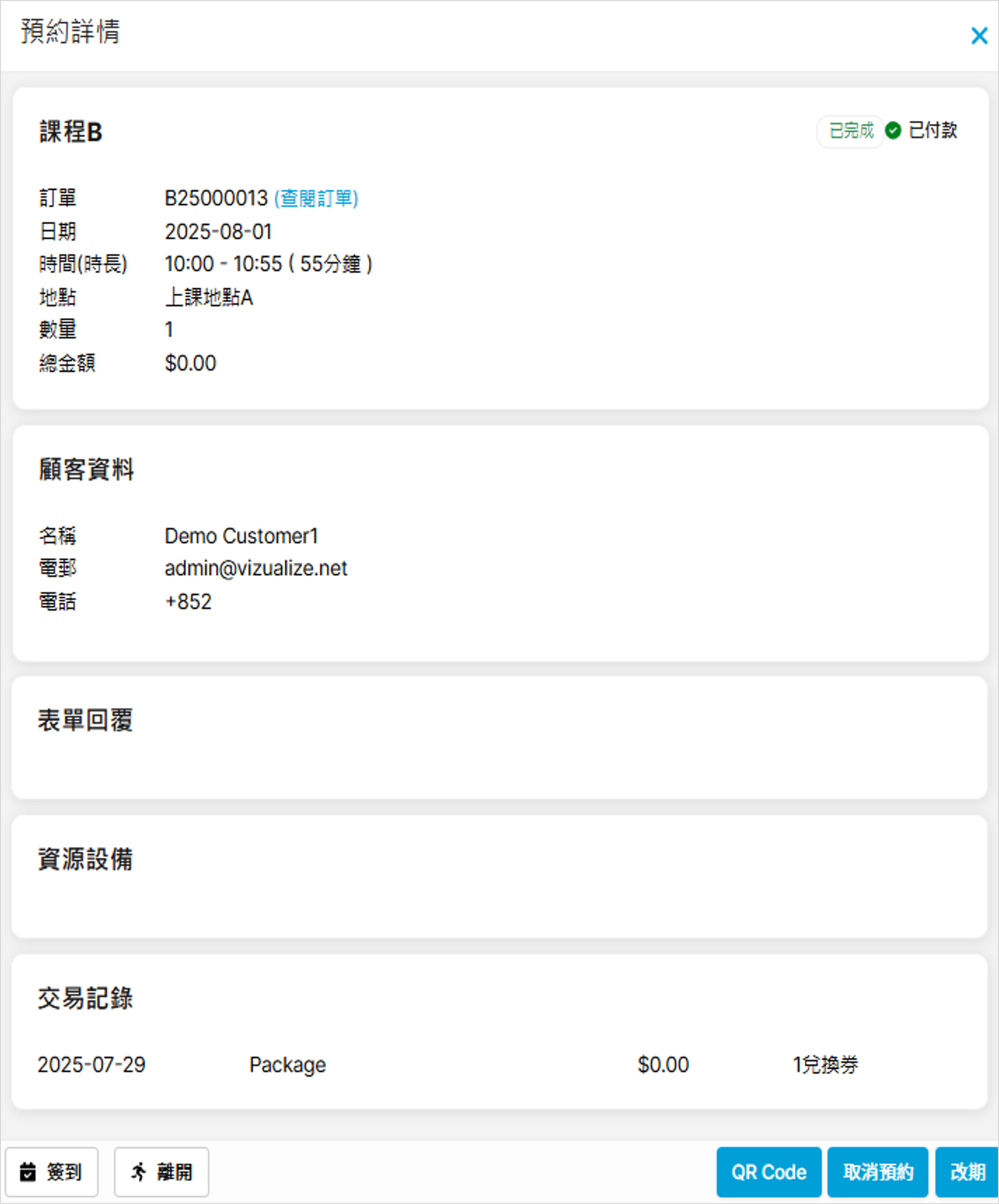 點擊預約紀錄右方的「詳情」,便可瀏覽預約細項: