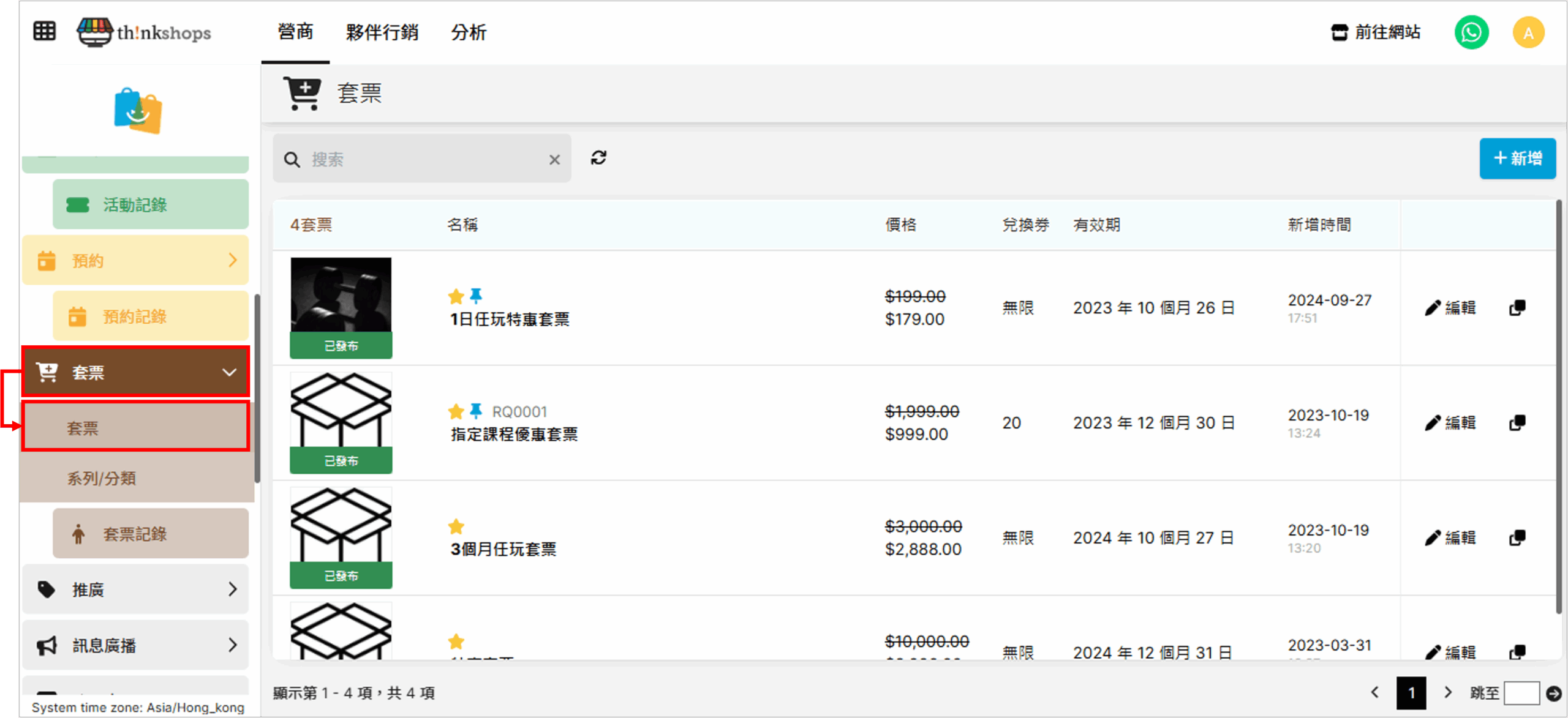 選單位置:於後台左方主選單點擊「套票」下的「套票」: