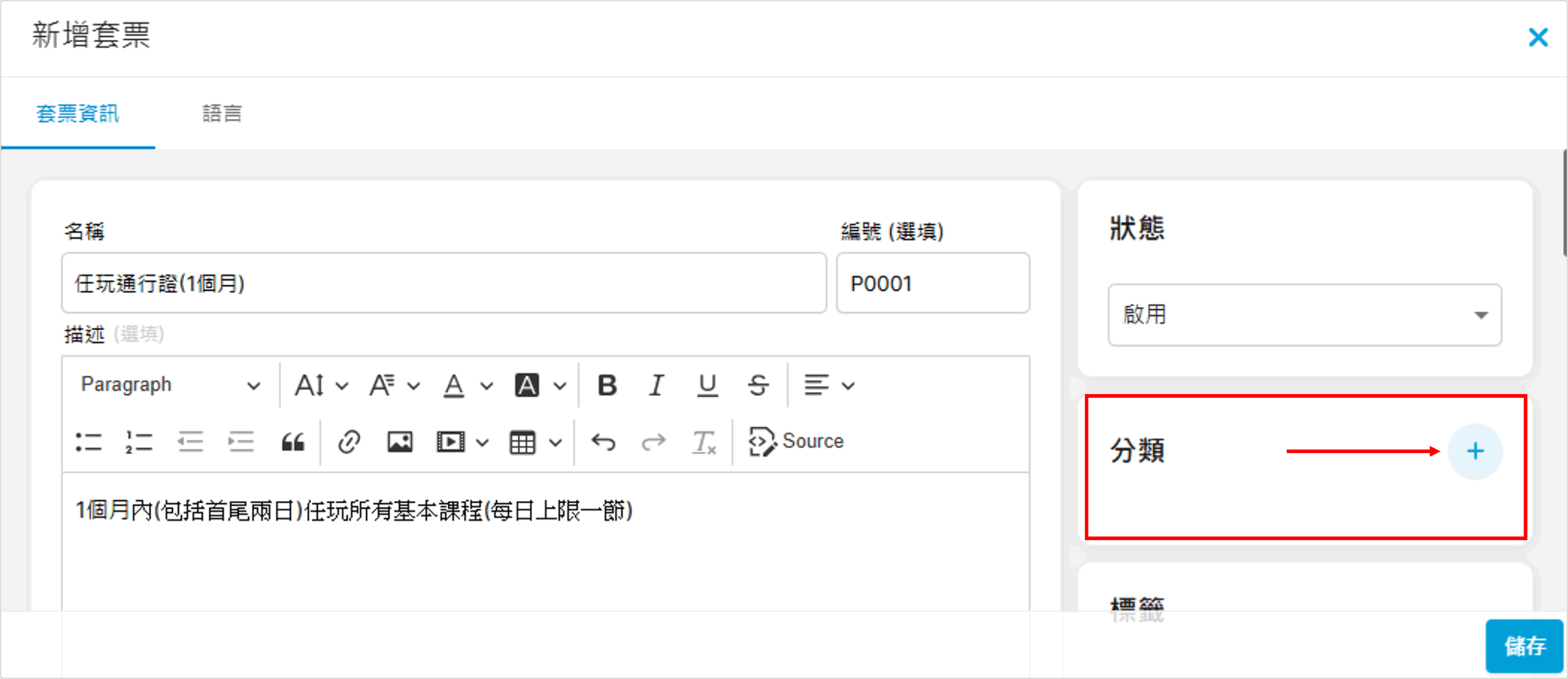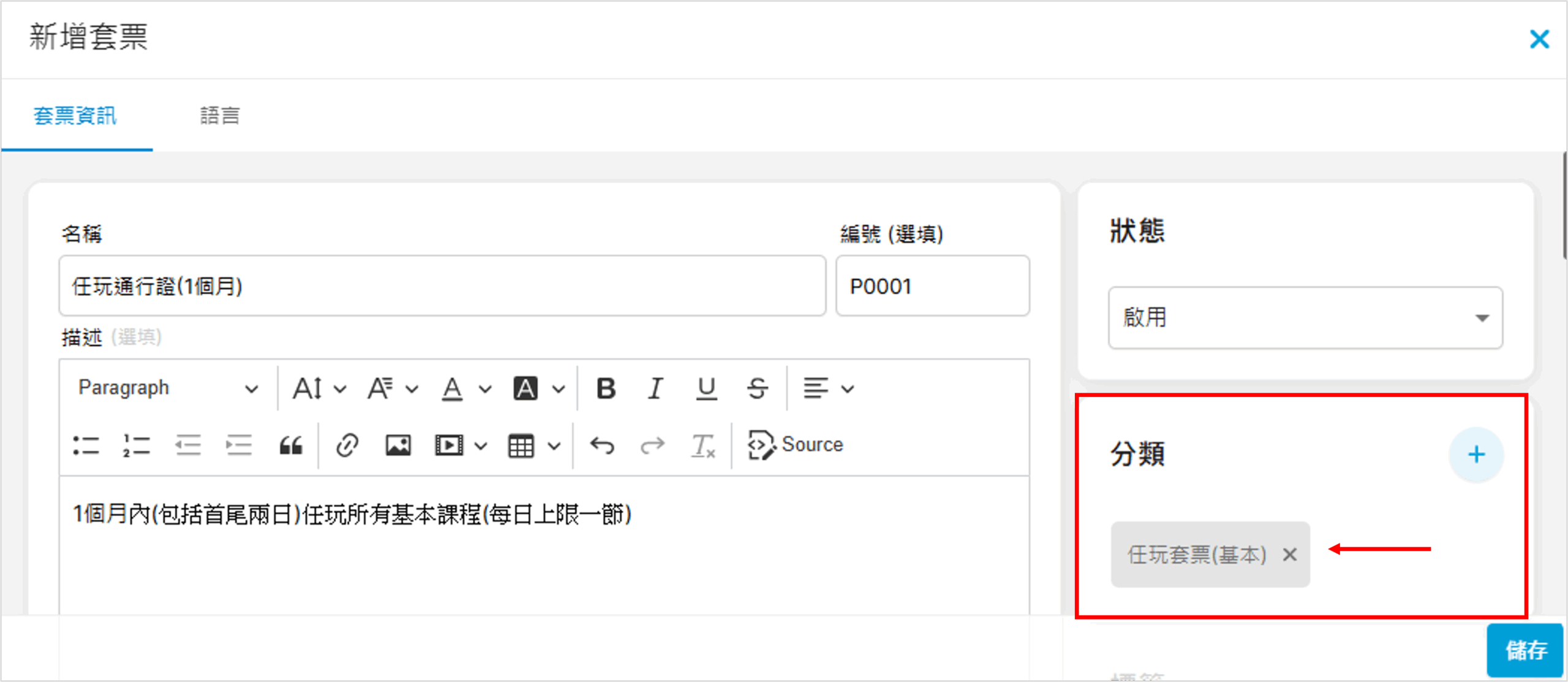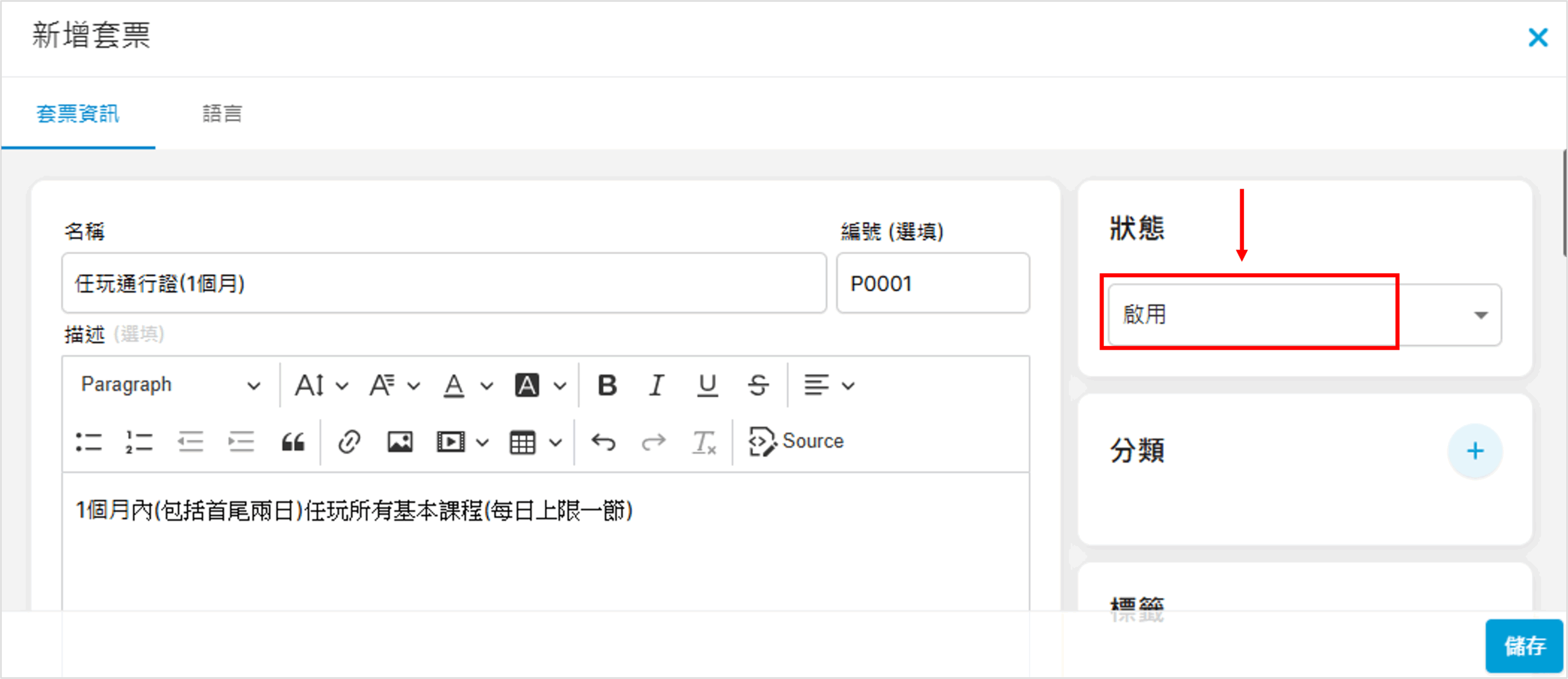 2. 狀態轉為啟用(亦可於上架時才啟用)