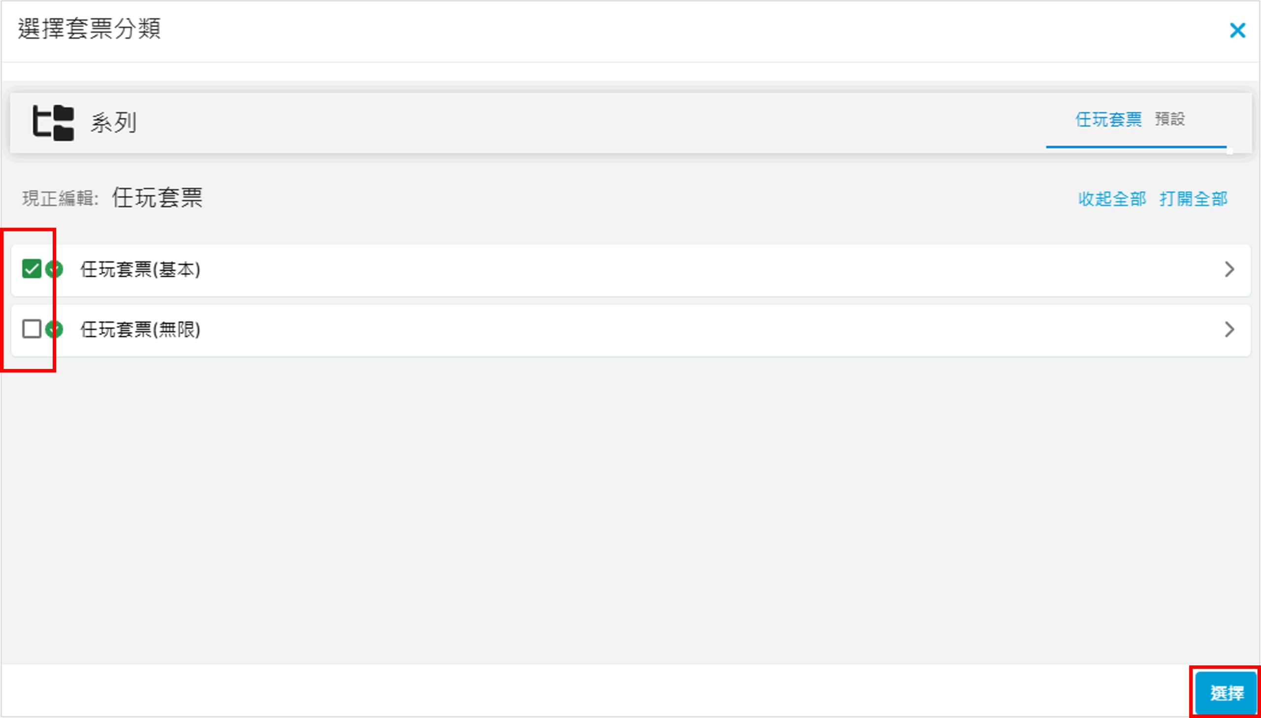 勾選需加入的系列/分類,再按右下方「選擇」: