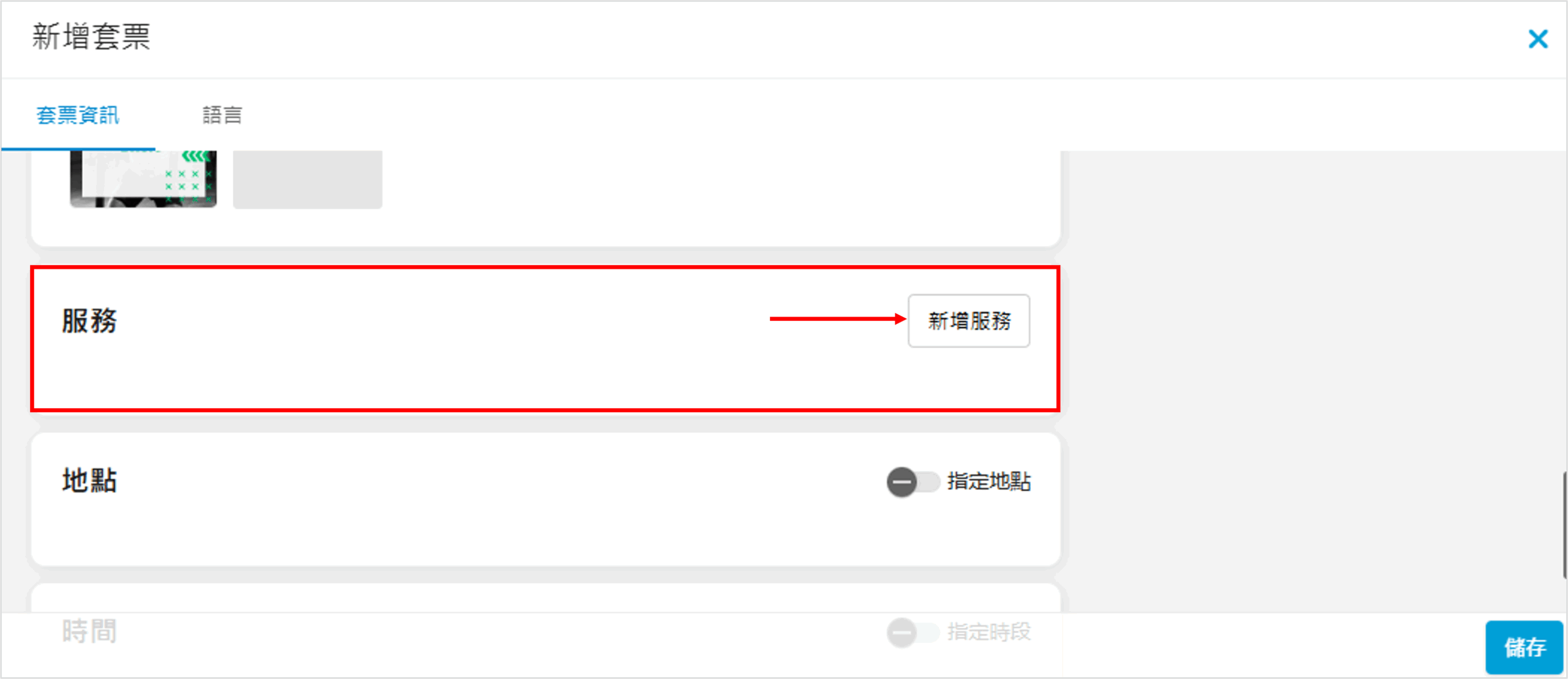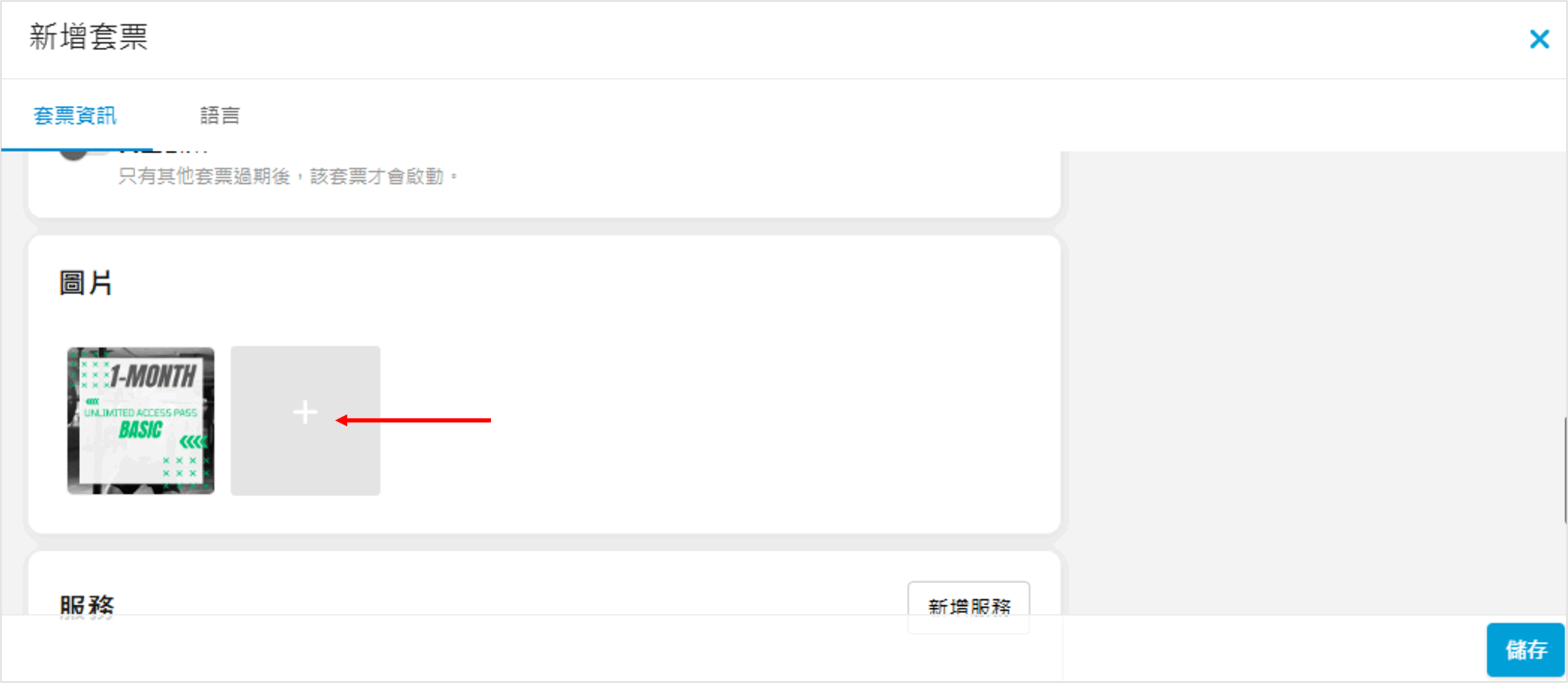 加入此套票可使用的服務,先按「新增服務」: