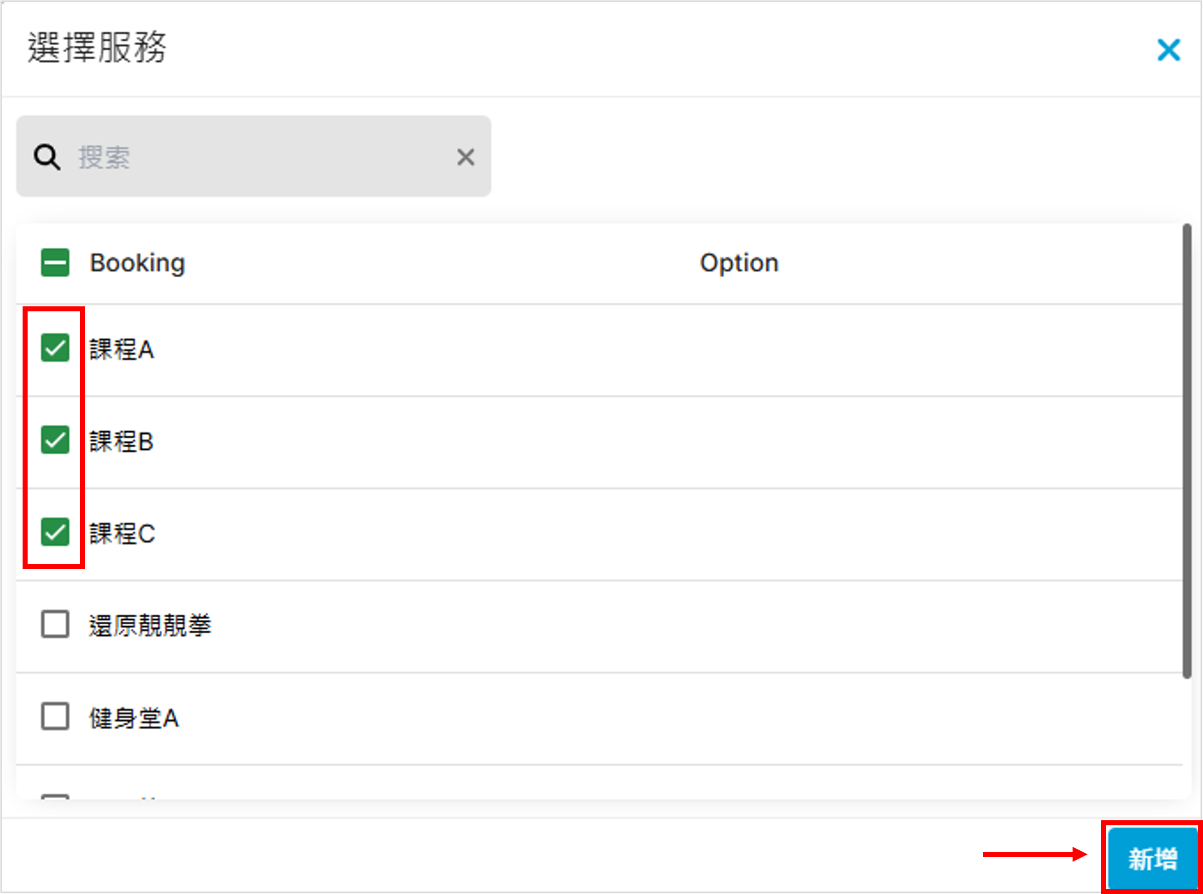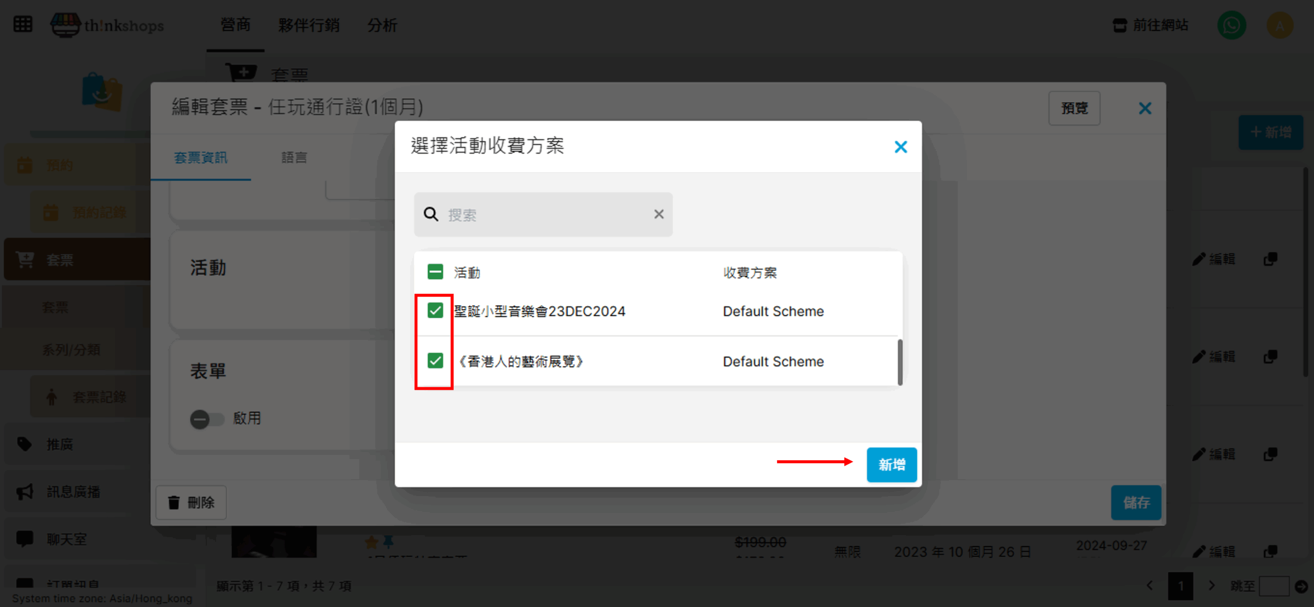 勾選可使用此套票的服務,再按「新增」:
