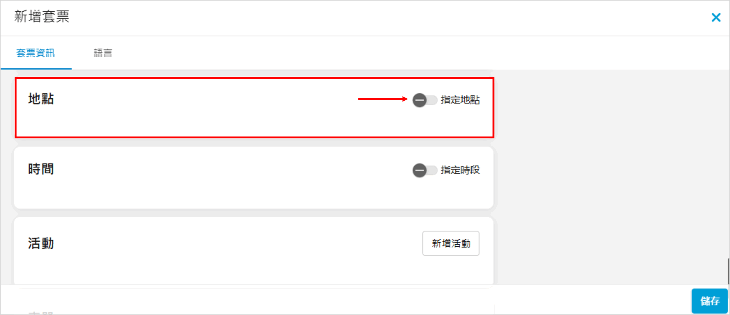 如套票只適用於指定地點,可勾選「指定地點」: