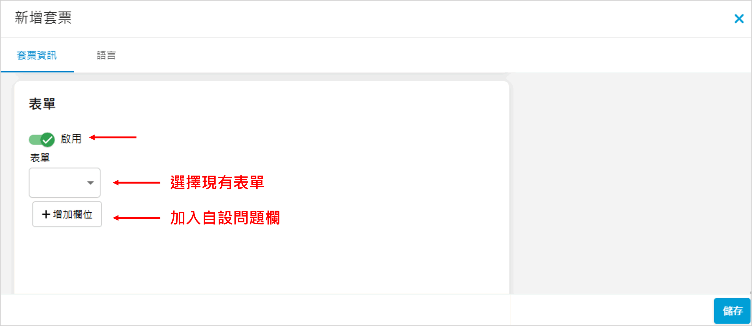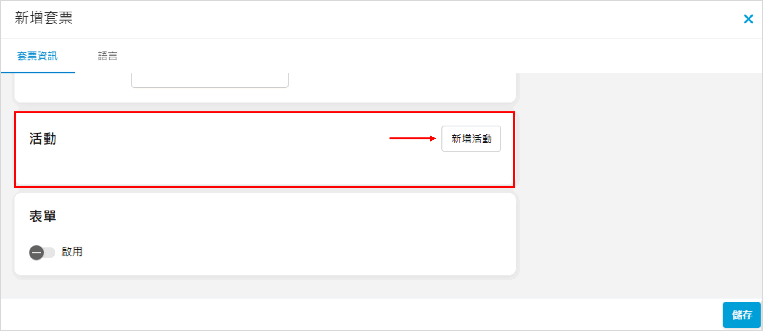 如套票適用於活動門票,可點擊「新增活動」: