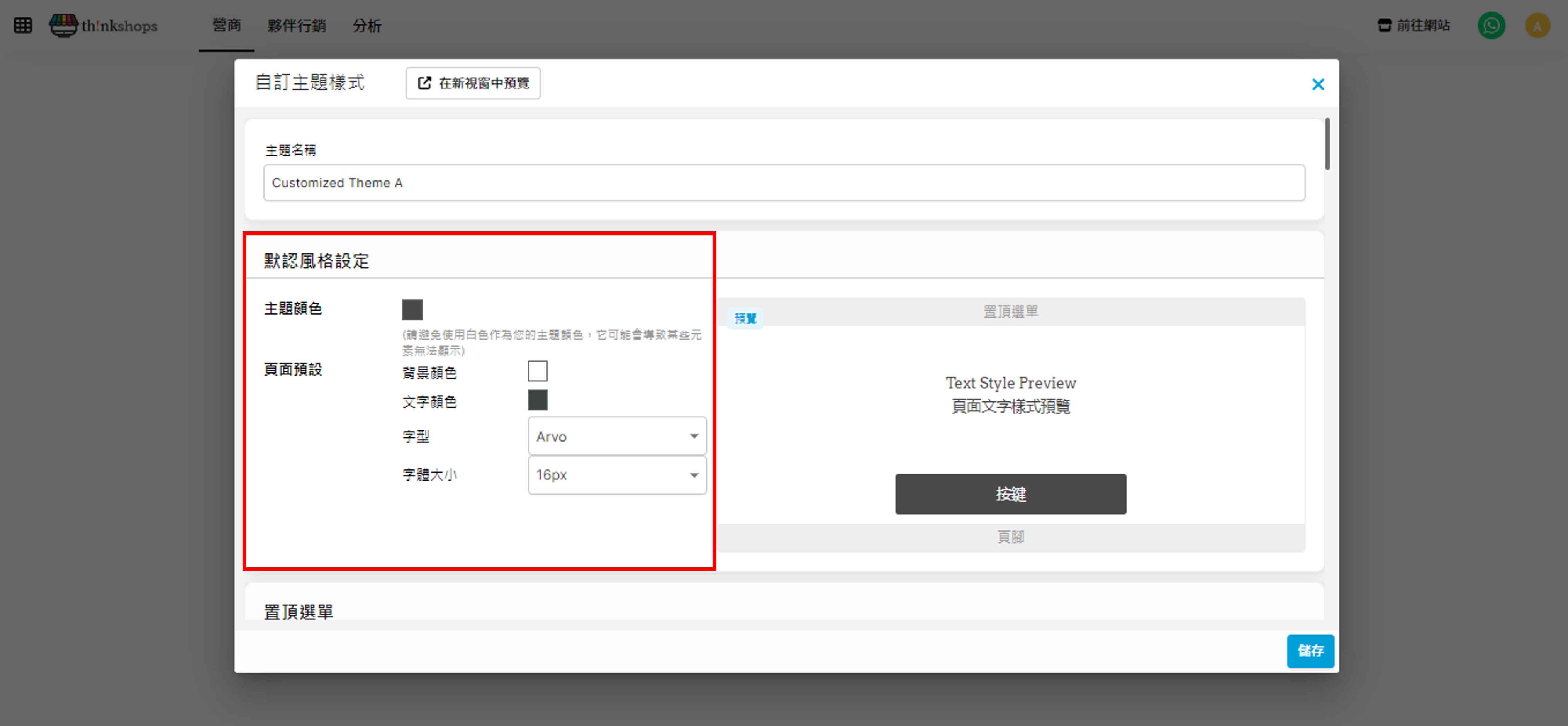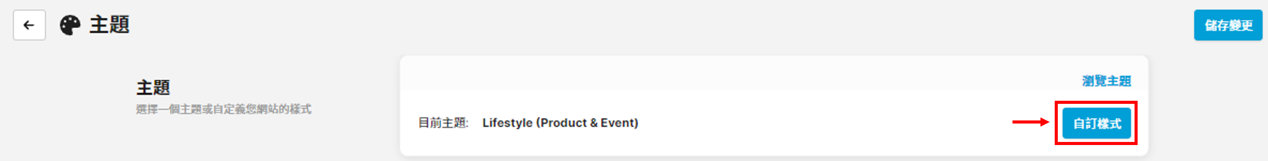 完成以上設定後按「儲存」>「儲存變更」即完成自訂主題設定。