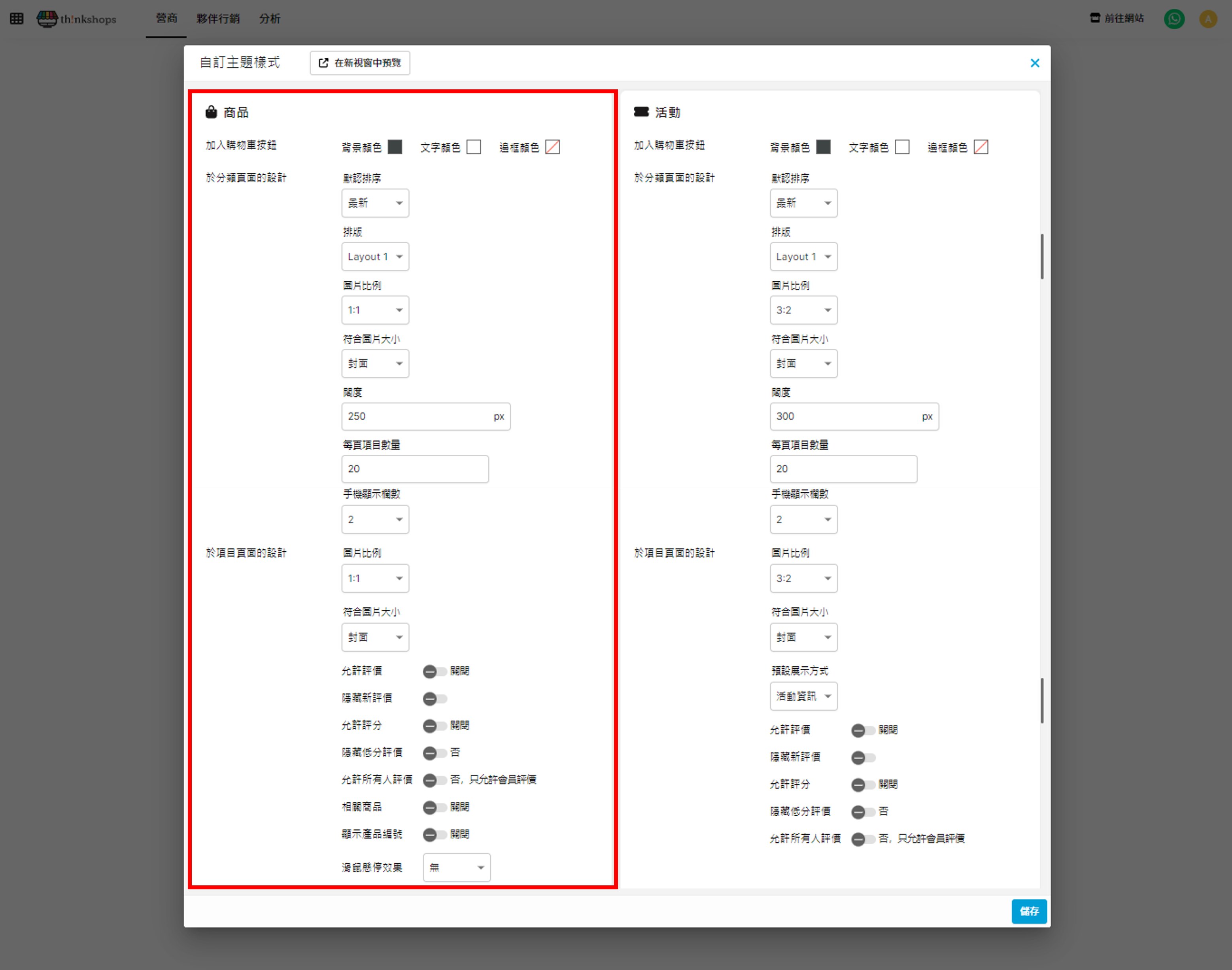 • 相關商品:是否於頁底建議相關商品(於商品資訊中設定的「分類」)