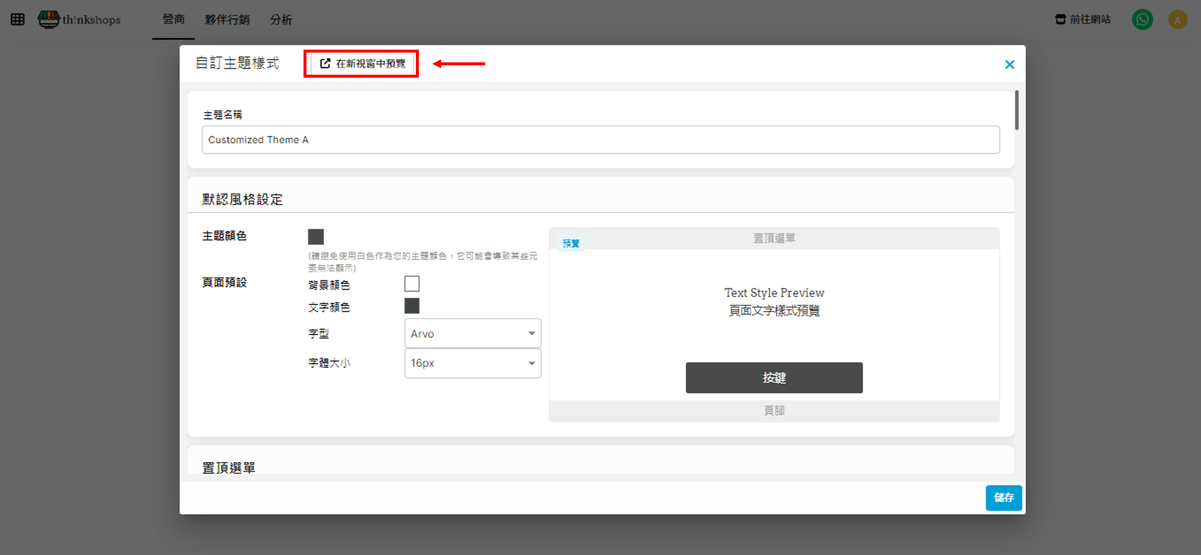 如希望預覽整體設定效果,您可以點擊「在新視窗中預覽」: